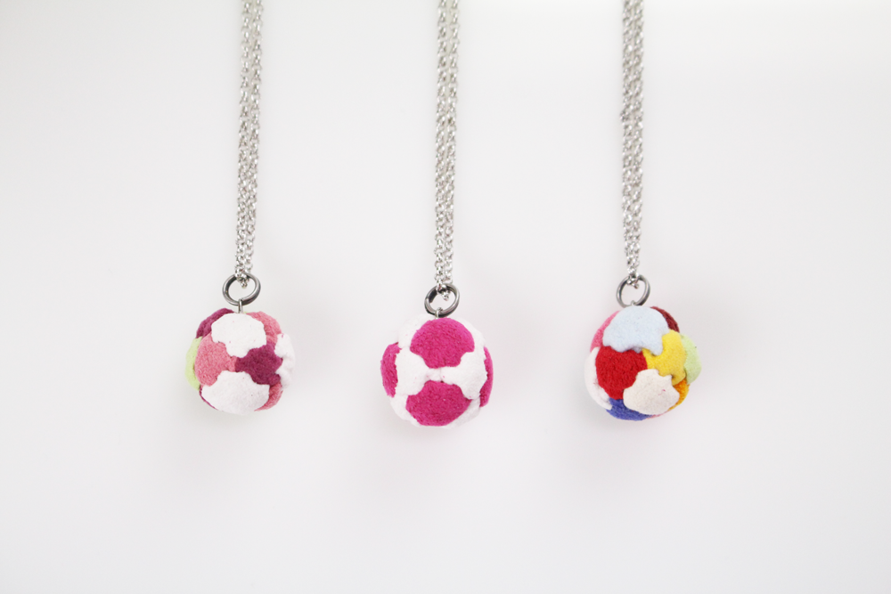 そして単に競技用としてだけではなく、カラフルなバッグは部屋に飾っておくインテリアとしても人気が高いという。また、FOOTBAG MANIAでは、フットバッグアクセサリーも製作・販売している。特にフットバッグネックレスは男性女性を問わずに人気を博し、贈り物としても喜ばれる。