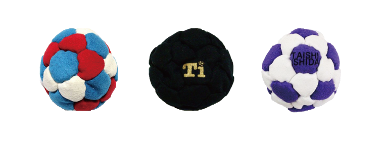 さらに、初心者でも扱いやすく、競技用として上級者も使用可能な「TAISHI ISHIDAモデル」は特にオススメしたいフットバッグ。世界の頂点を極めた、石田のプレーヤーとしての経験や知識を基に、海外のフットバッグ職人と何度も話し合いを重ねる中で生まれた柔らかさと高いクッション性を兼備する逸品だ。